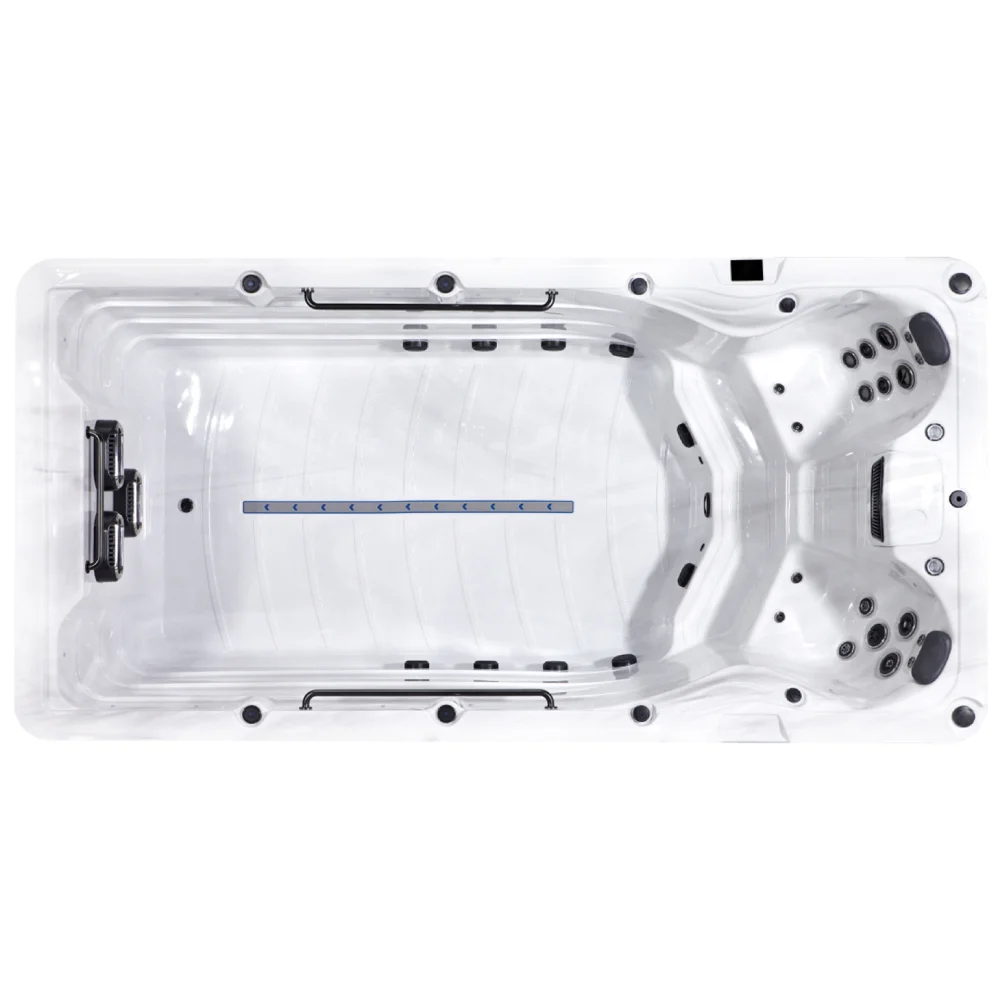 The Eros swim spa is one of the most compact options in our range of swim spas. It’s a perfect choice for family fun and fitness and is equipped with four powerful pumps that can be directed to the swim jets, diverted to the hot tub end, or adjusted half-and-half.