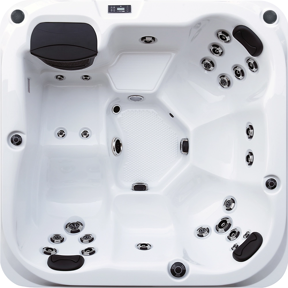 The Reims hot tub from the Platinum Spas Deluxe Range is designed for those seeking both relaxation and value. Seating up to five people with a 4-seat and 1-lounger layout, it features 25 jets for a soothing hydrotherapy experience. With LED lighting, Bluetooth music, and Ozone purification, the Reims offers both comfort and entertainment in a sleek, energy-efficient design.