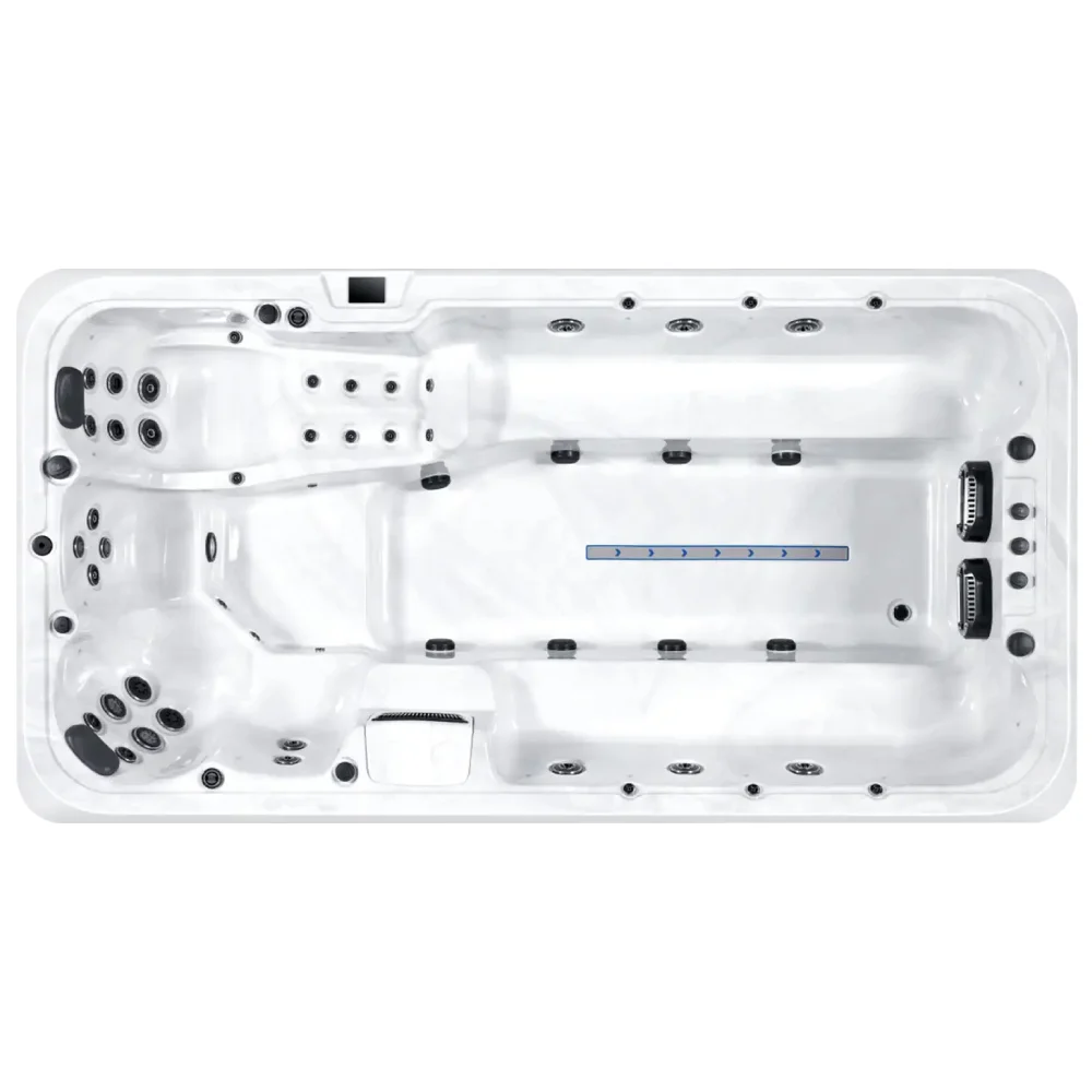 The Titan swim spa is the ultimate choice for those seeking a spacious swim spa experience. Designed with a bench-style layout, it comfortably accommodates up to 10 people with 9 seats and 1 lounger. With 38 targeted jets and a robust 40 Amp power supply, the Titan offers invigorating hydrotherapy and a seamless blend of relaxation and exercise.